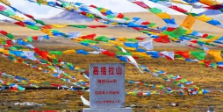 嘉措拉山口,也称定日界,这里也是珠峰国家级自然保护区的山口,巨大的保护区标牌竖立在公路上,无数的经幡迎风飘扬。嘉措拉山口5248米,水泥标高牌上挂满了五彩经幡。